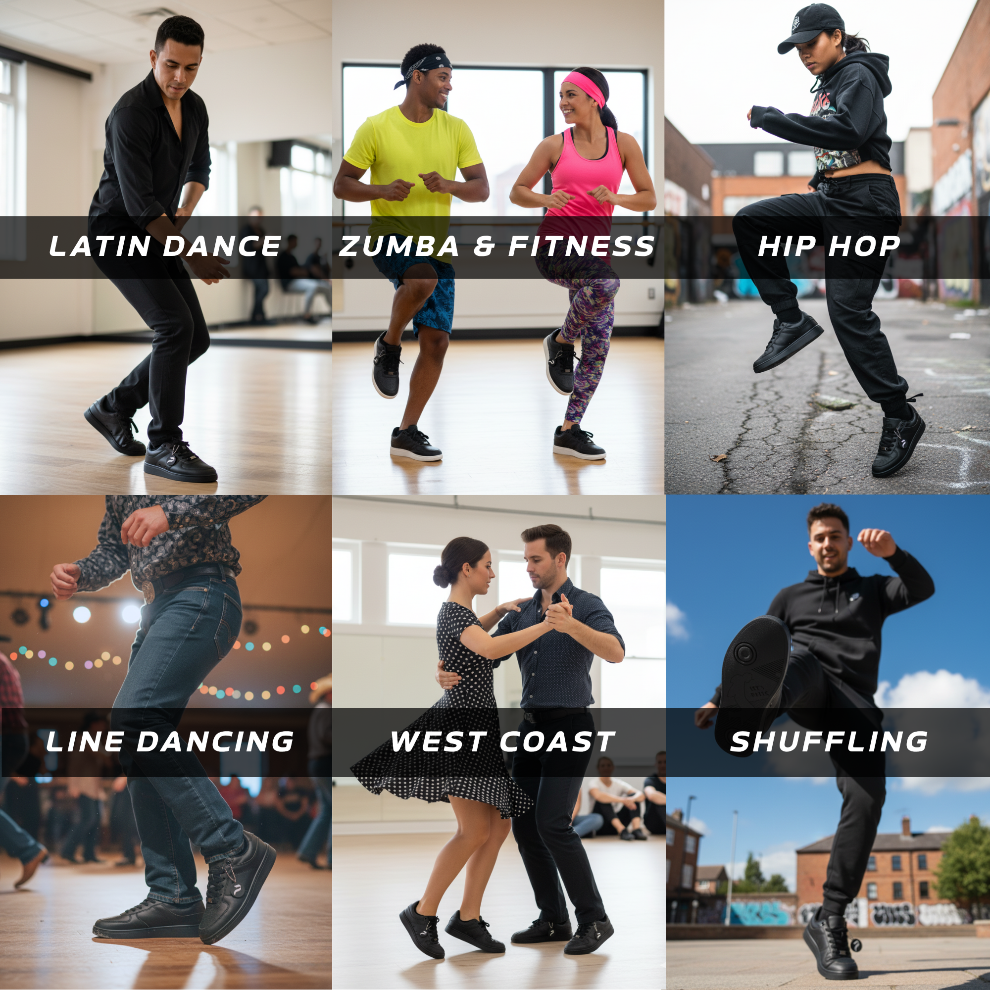 Made for how you really move, whether it’s salsa, bachata, shuffling, hip hop, west coast, line dancing, or Zumba. Versatile, stylish, and ready for dancing.