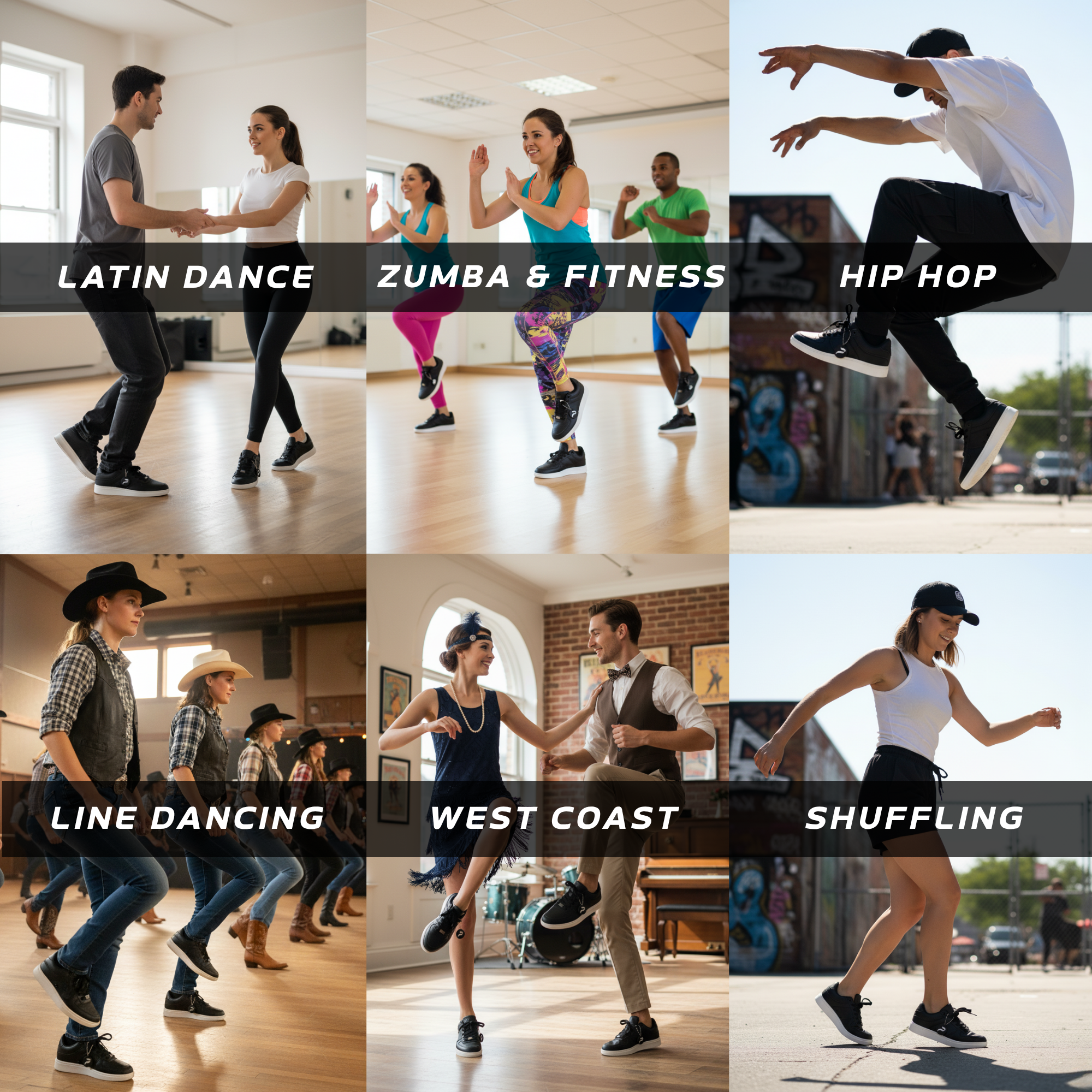 Made for how you really move, whether it’s salsa, bachata, shuffling, hip hop, west coast, line dancing, or Zumba. Versatile, stylish, and ready for dancing.